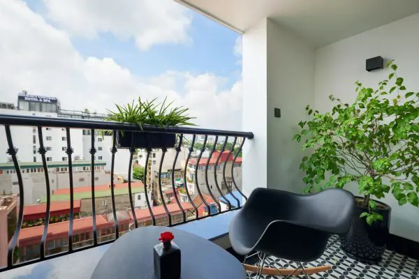 Elegant suite room with spacious balcony, where we arrange outdoor table and chairs for your relaxation time.