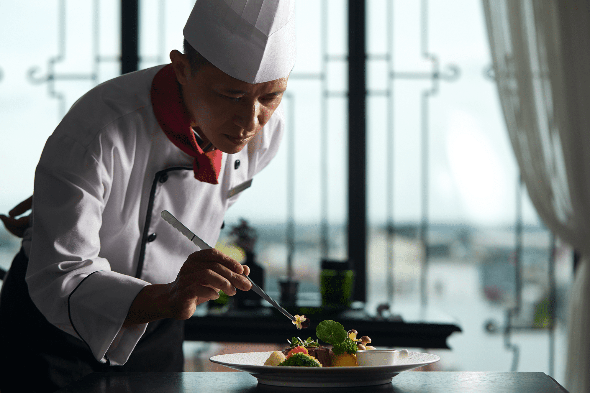 We chose to call our new restaurant Cloud Nine because we are confident after dining here you will feel extremely happy and satisfied. Located on the 9th floor and encased in walls of floor to ceiling windows, with soft cream drapes, the 360 degree views across Hanoi’s rooftops, Hoan Kiem Lake and Red River are breathtaking and inspiring. Flooded with light and a feeling of openness the concept of seeing the outside world is just as important as what is within.