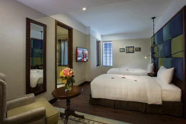 With a design inspired by the Art Deco era, our spacious Deluxe Triple Rooms offer a true sense of Hanoian style.